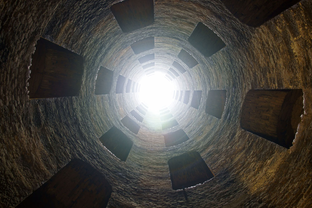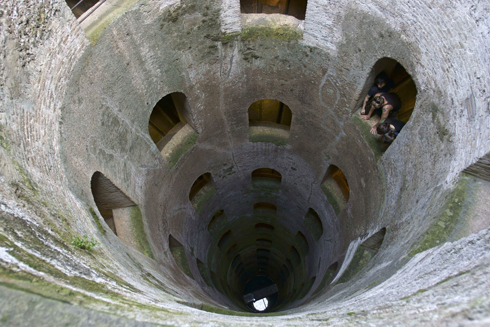 Po wyjściu z katedry wydawałoby się słusznym odwiedzić miasto, ale katedra nie pozwala odejść od swojej fasady. Nie szukamy jak Herbert restauracji, z której byłoby ją widać i która byłaby odpowiednio droga „przez cień, jaki rzuca na makaron”. Ale zaglądamy w malownicze uliczki i oczywiście do znajdującej się opodal słynnej studni św. Patryka. Głęboka na prawie 59 metrów, szeroka na ciut ponad 13 metrów, prowadzi na dno 248 stopniami, tak szerokimi, by mogły po nich wjeżdżać i zjeżdżać osiołki niosące naczynia na wodę. Ma dwie oddzielne klatki schodowe – jedna prowadzi w dół, druga w górę. To arcydzieło inżynierii powstało w XVI wieku, w czasie rabunku Rzymu dokonanego przez wojska hiszpańsko-niemieckie. W tym trudnym czasie, w Orvieto schronił się papież Klemens VII. W trosce o miasto, które mogłoby być oblężone, polecił architektowi Antoniemu di Sangallo Młodszemu zbudować studnię. Dzięki niej miasto na wzgórzu miałoby stały dostęp do wody.