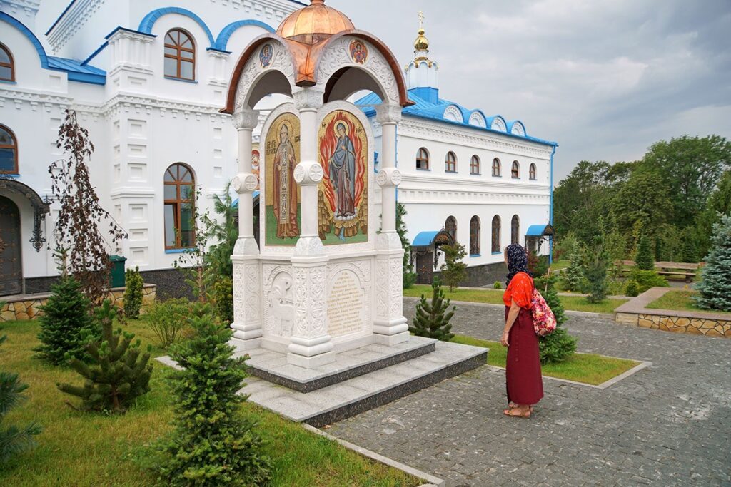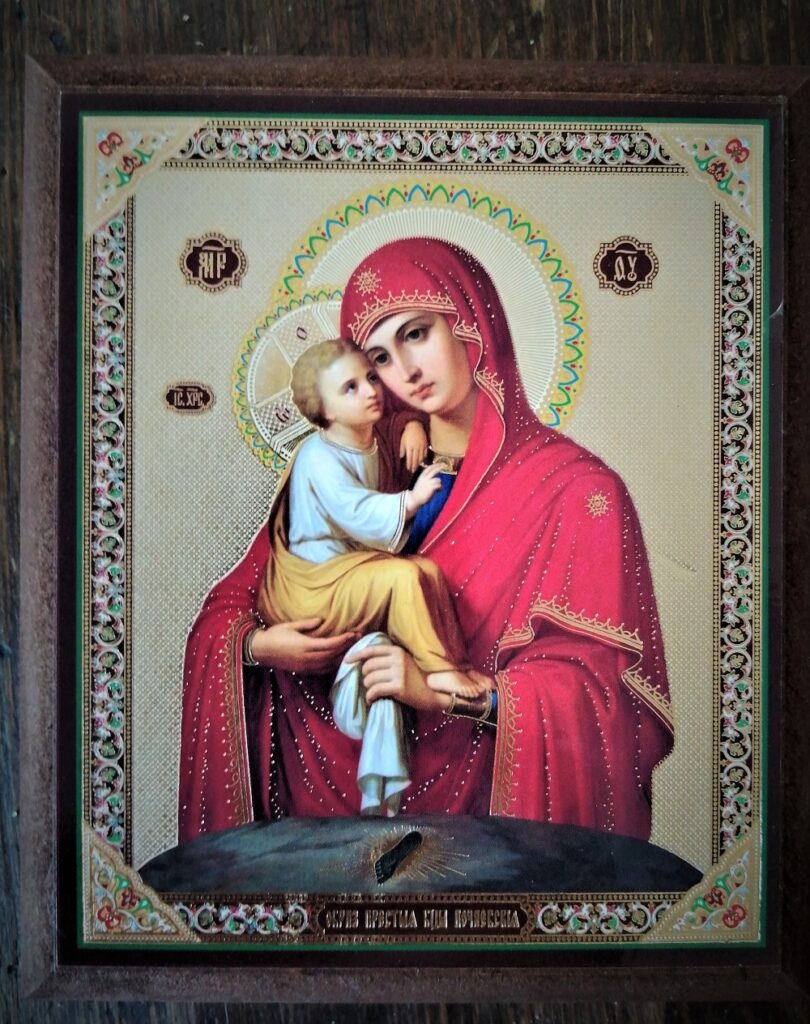 Nie wiem, kto z nas wpadł na pomysł pojechania właśnie tam. Jak ominąć takie miejsce? A jednocześnie jak można trafić tam tak późno, dopiero przy trzeciej ukraińskiej wyprawie? Jechaliśmy do Poczajowa długo, okrężną drogą, bo nie wiedzieliśmy o jego istnieniu. Na pierwszy trop – nieświadomie, trafiliśmy w Odessie rok wcześniej. Wówczas w jednej z cerkwi naszą uwagę przykuł niewielki obrazek – reprodukcja ikony w typie Matka Boża Eleusa – archetyp matki, opiekunki, piastunki. Młoda matka trzyma w ramionach wpatrzone w nią Boże Dziecię. Przed nimi widać kamień, na którym odciśnięta jest stopa Maryi. Urzekła nas uroda tej ikony. Oczarowało spojrzenie młodej, pięknej kobiety, pełne łagodności i jednocześnie siły. Chyba nawet nie było na obrazku podpisu, nazwy wizerunku – w sumie po co? Tu, na Ukrainie, tę twarz zna niemal każdy.