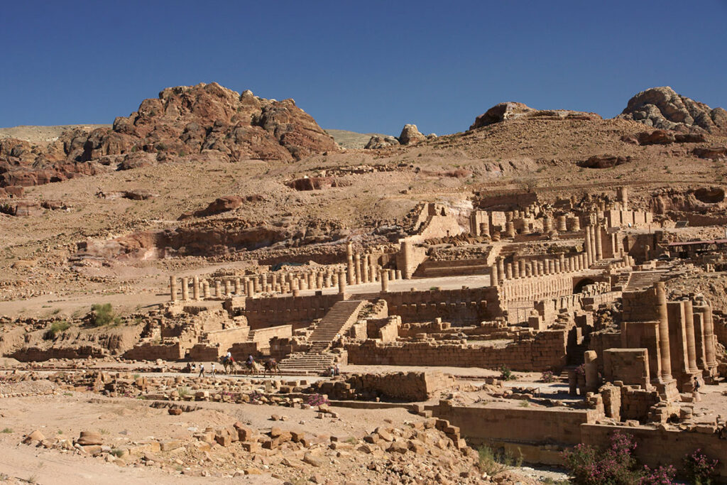 Petra – jeden z Siedmiu Cudów Świata, wpisana na listę Światowego Dziedzictwa UNESCO –stworzona została przez Nabatejczyków w III w. p.n.e. i przetrwała do I w. n.e. Plemię przybyło do Jordanii z Półwyspu Arabskiego i stworzyło Królestwo Nabatejskie, , którego Petra była stolicą. Posługiwali się dialektem arabskim oraz alfabetem nabatejskim. Zajmowali się głównie handlem. Byli zatem ludem przedsiębiorczym, zamożnym. Ich Petra była i dziś ciągle jest olśniewająco piękna. Nie zdobyta, ani przez Heroda Wielkiego, ani Kleopatrę ani przez Oktawiana Augusta. Sprzymierzona z Cesarstwem Rzymskim, rozwijała się znakomicie pod bokiem mocarstwa, czując respekt, wspomagając je militarnie i tym samym korzystając z praw i przywilejów sojusznika. Jej niezależność naruszył dopiero cesarz Trajan w 109 r. n.e., włączając Królestwo Nabatejczyków do Cesarstwa jako nową prowincję – Arabię. Jednak i wtedy zamożna i pękata od mieszkańców Petra miała się dobrze. Trajan uczynił z niej rzymskie miasto, a kolejny cesarz – miłośnik architektury Hadrian- często tu bywał, ciesząc oko pięknem dawnej nabatejskiej stolicy i nawet przyczynił się do jej rozbudowy. Co położyło kres jej prosperity? Religie i przyroda, Ale zanim to nastąpi…