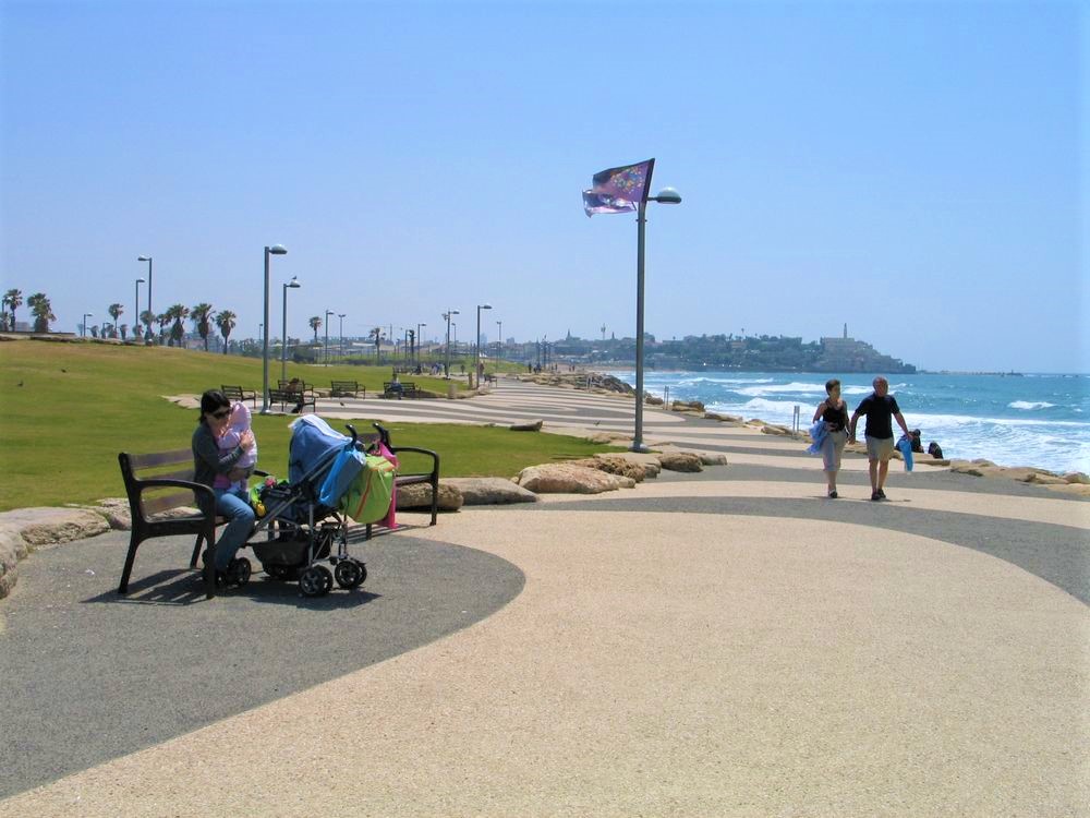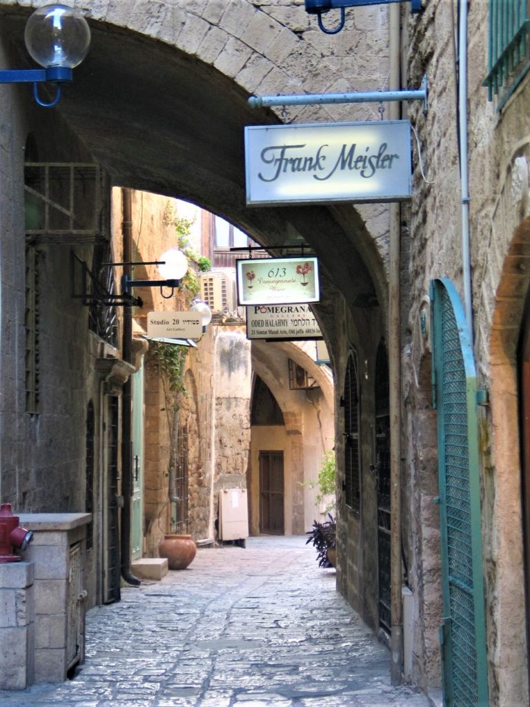 Ale przy pierwszej wizycie warto się rozejrzeć. Z Bazaru Karmel właściwie widać miejską plażę. I tę wizytę nad brzegiem lazurowego morza warto wpleść w plan odwiedzenia izraelskiej stolicy. Plaża ciągnie się w nieskończoność i w maju jeszcze nie jest oblegana przez mieszkańców i turystów, jest pusto, gorąco, błękitnie – pięknie. Z jednej strony graniczy z tel avivską „starówką” – czyli dawnym arabskim miastem Yafa, z drugiej, z potężnym portem. W pigułce dostajemy mieszankę orientu z panoramą nowoczesnych drapaczy chmur, palmami i błękitną taflą Morza Śródziemnego. Bardzo lubię to miejsce. Humus wyjątkowo dobrze komponuje się z tą panoramą, tym błękitem, tym bogactwem plażowego ptactwa, które u nas tylko w ZOO i mieszanką ortodoksji z ultranowoczesnością i szeroko zakrojonym liberalizmem, także obyczajowym. To tutaj jest, za każdym razem 😉. Tel-Aviv-Jafa – zdecydowanie do zwiedzania przed Jerozolimą – wtedy zachwyci to niewielkie, urocze, pełne wąskich uliczek i maleńkich ważnych świątyń dawne miasteczko, jeden z najstarszych na świecie portów. Dziś pełno tu sklepików i butików z biżuterią artystyczną i ciuchami vintage, ale i niewielkich sklepików z drogimi markowymi gadżetami. Są i przyprawy i orientalne dywany i zupełnie niearabska wieża zegarowa, nieczynna latarnia i oczywiście słynne pomarańcze z Jafy (szukajcie naklejek z tą nazwą – Jaffa – na pomarańczach- stąd ponoć pochodzą najlepsze, zaczęli je uprawiać Palestyńczycy właśnie w okolicach Jafy), katolicka świątynia meczet i żydowskie modlitewnie – wypisz, wymaluj Izrael w pigułce. Miasto do 1949 roku było samodzielne, po stworzeniu państwa Izrael stało się dzielnicą jego stolicy. Urokiem Jafy jest brak knajp, co za tym idzie brak reklam. Jest to mekka sztuki – galerii, pracowni sklepików. Urocze ceramiczne numery domów, malownicze zakamarki, zatrzymują tu na dłużej. To znakomite preludium do późniejszych wrażeń w Jerozolimie, Akce, Nazarecie… Ach, a wiecie, że nasze Delicje to oryginalnie Jaffa cakes – ciasteczka z galaretką z pomarańczy narodziły się właśnie w palestyńskiej Yafie.