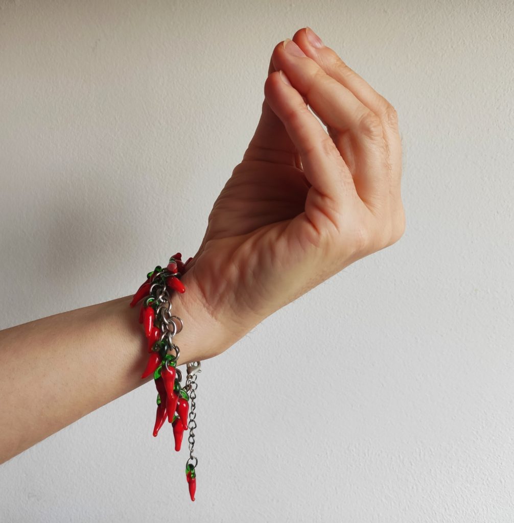 Cornetto wyglądający jak peperoncino jest w Neapolu wszędzie, dosłownie. Nie tylko na straganie w witrynie, w samochodzie, nad wejściem do sklepu, baru, restauracji, ale nieomal w każdym neapolitańskim i nie tylko portfelu. To symbol powodzenia. Niegdyś wykonywany z korala, dziś z plastiku sprzedawany w pojedynczych egzemplarzach lub w całych naręczach, chroni, podobnie jak w innych krajach oko proroka, przed złym okiem człowieka ;-). Taki prywatny róg obfitości, też mam 😉