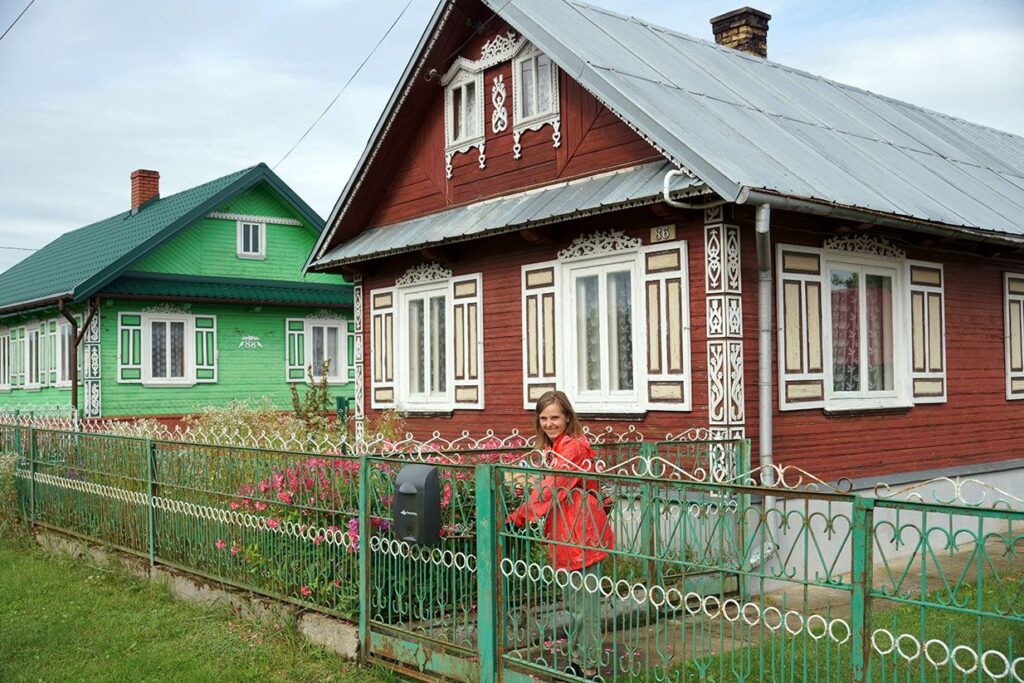 Zdobienia, dla których przybywają tu turyści, przybyły do tej części Podlasia na początku XX, gdy z „bieżeństwa” (przymusowego wysiedlenia do Rosji) zaczęli wracać białoruscy – tutejsi mieszkańcy wiosek. I na białoruską, a może nawet na modłę z carskiej Rosji zaczęli zdobić swoje domy. I urocze te domki i jakby ich więcej każdego roku. Pierwsza z ozdobionych wiosek i zarazem największa to Trześcianka – już z drogą asfaltową z kapliczkami słupowymi i przystankami z elementami snycerki. Niewielkie chaty, uroczo udekorowane, z otwartymi szeroko okiennicami, stoją szczytem do drogi. To pamiątka po reformie, którą zarządziła Królowa Bona, największej zresztą reformie agrarnej w ówczesnych czasach, w tej części Europy. Nowa miara gruntów nazywana włóką zmieniała i proporcje działek i ustawienie domów, kształty i długości wsi. Zaradna Włoszka uporządkowała w ten sposób własności królewskie. A, że pomysł był wyśmienity, to wsie zachwycają swym porządkiem architektonicznym do dziś. Trześcianka jest nawet objęta ochroną konserwatorską.