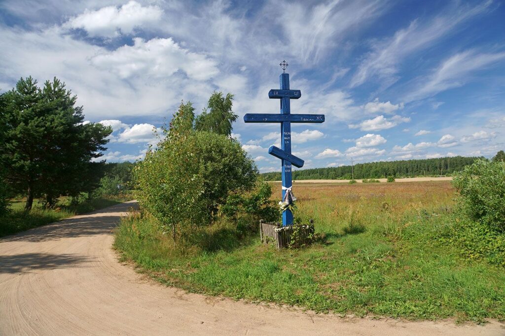 Do pobliskich, mniejszych Pucheł, już po piasku. Na rozstajach dróg choleryczne krzyże i katolickie i prawosławne, z prośbą, życzeniem, – „Spasi i Sohrani”. Podzielamy prośbę. Cerkiew w Puchałach jest najpiękniejsza, na całym Podlasiu. Dostojna, granatowo-złota. Długi i ciężki kowalski klucz do jej obszernego wnętrza ma w ręku żona księdza, dyskretnie chowa układ zamka. Podlasie ma otwarte okiennice, otwarte drzwi, nawet klucze w tych drzwiach zostają na zewnątrz, otwarte serca, ale największe skarby – ikony, wizerunki proroków, Chrystusów i archaniołów chowa pod kluczem. A to niedawno zginęła skarbonka z datkami, a to złe oko, chciwie spojrzało na ikonę… Ale oglądać można i zarówno batiuszka, jak i żona chętnie pokazują przyjezdnym rozbielony ikonostas i opowiadają o zawikłanych losach tej wioski z białoruską społecznością.