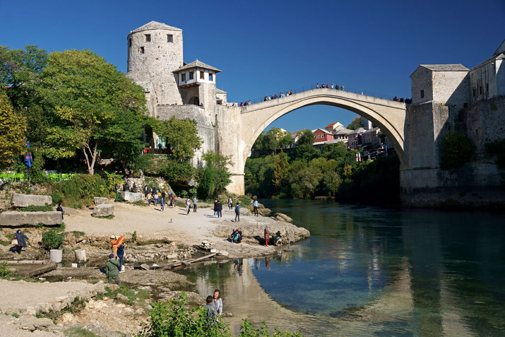 Mostar, no trudno o bardziej wypełnioną znaczeniem mostów nazwę miasta, niż ten kawałek świata w Bośni i Herecgowinie. Dla tutejszego XVI-wiecznego mostu z rozerwanym rodowodem, pokonuje się góry. Dla tej uroczej, arcymalowniczo położonej przeprawy jedzie się tu przez różne kraje, znaczone śladami niedawnej wojny. Bo w Mostarze króluje most. Dzieli/łączy jedno miasto na dwa światy – chrześcijański i islamski, różni Boszniaków (tak się ich tu nazywa) z Chorwatami, Serbami, ludzi z ludźmi, spaja lub rozdziela, sąsiadów z sąsiadami, braci z siostrami, wschodni brzeg z zachodnim…. Nieduży, choć szeroki (4 metry), smukły, delikatny, elegancki, choć solidny. Zawieszony wysoko nad lustrem szmaragdowej, rzeki Neretwy.
