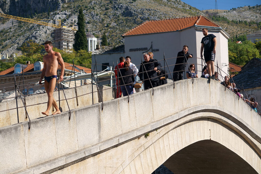Most narodził się z popiołów i dziś zachwyca będąc jednocześnie przestrogą, znakiem tego, do czego zdolny jest człowiek w swojej nikczemności, niechęci do inności, to tego drugiego, nie naszego, tamtego z jego innym zwyczajem, językiem wiarą, smakami i brzemieniem imienia. Po Starym Moście pozostał jeden stary obyczaj. Do dziś znajdują się śmiałkowie, którzy rzucają się w odmęty Neretwy, skacząc z najwyższego punktu mostu. Ten widowiskowy moment, jak dawniej gromadzi tłumy gapiów, po obu stronach mostu i na moście. Dawniej skok był dowodem męstwa, dziś jest dowodem odwagi w równym stopniu, co wynikiem sprytu, śmiałkowie skaczą bowiem po uzbieraniu odpowiedniej kwoty, wśród łaknących igrzysk turystów. Młodzieńcy prężą muskuły, paradują w kąpielówkach, przygotowują się do skoku, podczas gdy ich towarzysze zwinnie krzątają się wśród tłumu z wyciągniętym kapeluszem. Za emocje trzeba zapłacić. Popis jest spektakularny. Śmiertelnie niebezpieczny skok z 24 metrów w odmęty Neretwy, na chwilę powoduje wstrzymanie oddechu wśród tłumu, zapada cisza, która po wypłynięciu śmiałka zamienia się w burzę oklasków zaspokojonego emocją tłumu. Nie powiem, warto.