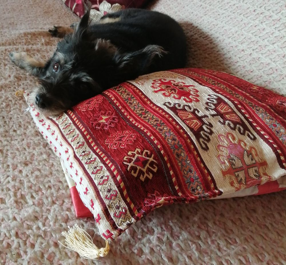 Ani bośniackie, ani chrowackie, ani serbskie, niczyje czterołapy … Może dlatego okupują most – leżą nieustająco każdeo dnia, na środku, z boku, to pas ziemi niczyjej…, fot. NoszkaPon, październik 2019, Mostar