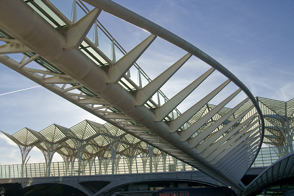Z kolei, z tęsknoty za nowoczesnością Lizbona wydała na świat Park Narodów, dzielnicę – wizytówkę współczesnej architektury. Definiują ją szkło, stal, biel i przestrzeń- przymioty nowoczesnego żaglowca. Ten kwartał miasta zwany też Oriente, z kolejką linową, mostem Vasco da Gama długim na ponad 17 kilometrów, rozpiętym tuż nad szeroką taflą Tagu, łączącym dwie miejscowości położone na przedmieściach Lizbony, największym w Europie oceanarium, powstał po Międzynarodowych Targach Expo `89. Rzeczywiście związków z morzem jest tu bez liku. Bramą do tego świata jest dworzec kolejki i autobusowy zarazem, jeden z największych dworców autobusowych w Europie. Jego konstrukcja, dla oka lekka jak piórko, wysmakowana, ażurowa jest dziełem słynnego Santiago Calatravy – hiszpańskiego architekta. Olbrzymie bliźniacze wieżowce – prują przestrzeń niczym dwa potężne statki. Gigantycznych rozmiarów most wybudowany został w 500. rocznicę urodzin Vasco da Gamy i nosi jego imię. W świat morskich przygód i tajemnic z dna oceanów zabiera z kolej oceanarium.